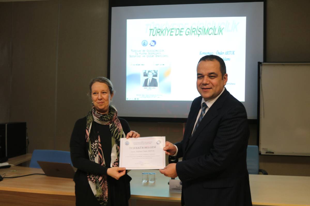 Seminer, öğrencilerin sorularının yanıtlanması, toplu fotoğraf çekimi ve günü anlam ve önemine binaen hediye takdimiyle sona erdi. Önder Artuk’un özellikle girişimcilik konusunda verdiği mesajlar katılımcılar tarafından ilgiyle takip edildi. >>Hüseyin ER-Mehmet Karakaş
