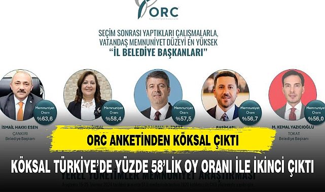 ORC Araştırma, seçim sonrası yaptığı çalışmalarla vatandaş memnuniyet düzeyi en yüksek belediyeleri açıkladı. Afyon Belediye Başkanı Burcu Köksal, yüzde 58.4 oy oranı ile Çankırı belediyesinden sonra ikinci sıraya yerleşti.