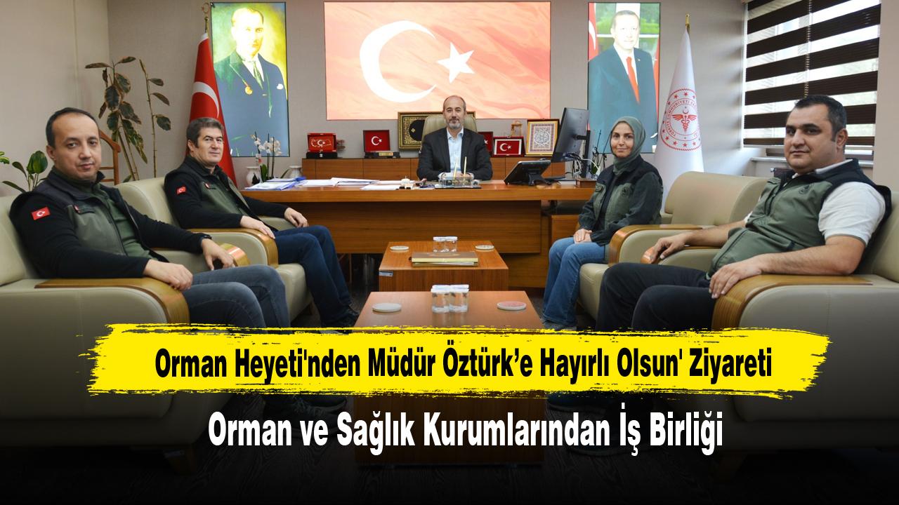 Afyonkarahisar Orman İşletme Müdürü Mutlu Tepe, Müdür Yardımcısı Mehmet Yiğit Şimşek, Orman Fidanlık Müdürü Attila Ünal ve Tıbbi ve Aromatik Bitkiler Merkezi Müdürü Emel Yıldız'dan oluşan heyet, Sağlık Müdürü Dr. Hakkı Öztürk'ü makamında ziyaret etti.