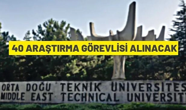 “Orta Doğu Teknik Üniversitesi Rektörlüğü, 2547 sayılı Yükseköğretim Kanunu ve Öğretim Üyesi Dışındaki Öğretim Elemanı Kadrolarına Yapılacak Atamalarda Uygulanacak Merkezi Sınav ile Giriş Sınavlarına İlişkin Usul ve Esaslar Hakkında Yönetmelik uyarınca Üniversite'nin akademik birimlerine 2547 sayılı Kanunun 50/d maddesi kapsamında 40 Araştırma Görevlisi alacak.