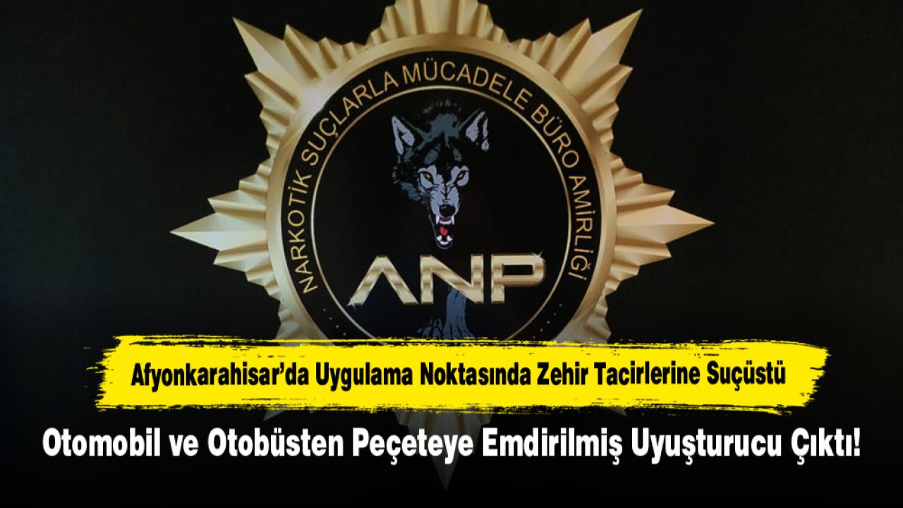 Afyonkarahisar İl Emniyet Müdürlüğü ekiplerinin uygulama noktasında durdurduğu otomobil ve otobüste yapılan aramalarda 15 peçeteye emdirilmiş uyuşturucu madde ele geçirildi. Olayla ilgili gözaltına alınan 3 şüpheli, çıkarıldıkları mahkemece tutuklanarak cezaevine gönderildi.