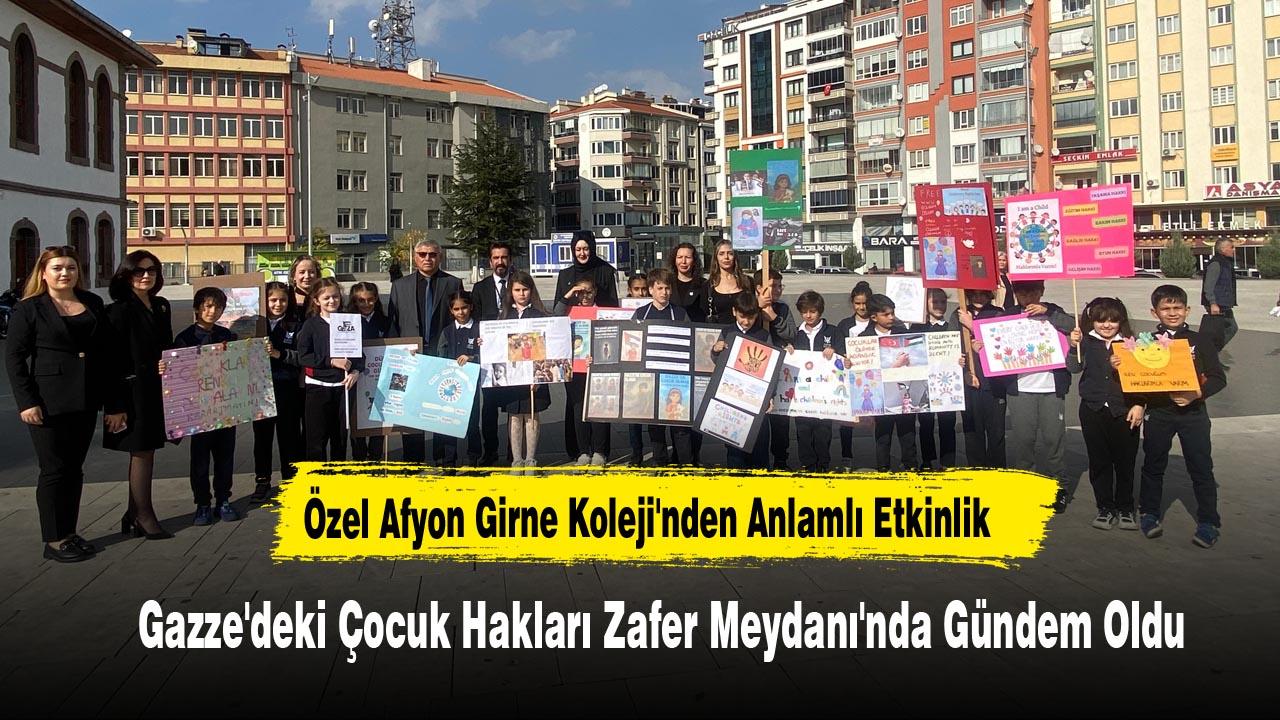 Girne Koleji'nde sınıf öğretmeni olan Gülnazik Üzel, çocuk hakları ile ilgili bir proje yapmak istediklerini dile getirerek, çocuk hakları deyince ilk önce tüm insanların da ortak hakkı olan yaşama hakkına dikkat çekmek istediklerini ifade etti. Üzel, "Çünkü bir çocuğun hakkı demek eğitim, sağlık ama ondan öncesinde yaşama hakkı olmadan hiçbirine erişemediğinden dolayı biz de Afyon Girne Koleji olarak Çocuk Hakları Gazze'de Çocuk Olmak adlı bir proje gerçekleştirmek istedik. Çünkü eğitimin sadece akademik yönden değil, çocukların topluma duyarlı, çaresindeki sorunlara duyarlı olarak yetişmesini istiyoruz. Bu yüzden Gazze'de Çocuk Olmak adlı projemizi gerçekleştirmek istedik. Bununla ilgili çeşitli çalışmalar yaptık, propagandalar yaptık, afişler yaptık. Amacımız bir çocuğun yaşam hakkının elinden alınmamasını sağlamak, Gazze'deki çocukların durumunu dile getirmek, farkındalık etkinliği oluşturmaktı. Afyon Girne Koleji olarak bu şekilde bir proje yaptık." dedi.