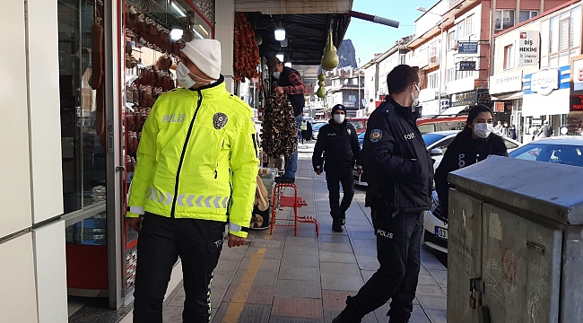 Afyonkarahisar’da Koronavirüs (Covit-19) tedbirleri kapsamında polis tarafından kent merkezinde yoğunluğun fazla olduğu caddelerde maske, mesafe ve sigara denetimi yapıldı.