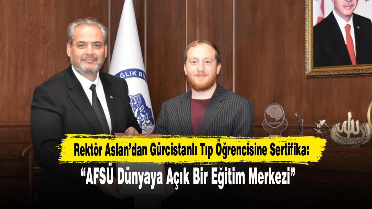 Afyonkarahisar Sağlık Bilimleri Üniversitesi (AFSÜ) Rektörü Prof. Dr. Adem Aslan, Tıp Fakültesinde eğitimini tamamlayan Gürcistanlı misafir öğrenci Othman Mohammad Saed Othman Albazz’ı makamında kabul ederek başarı sertifikası takdim etti.