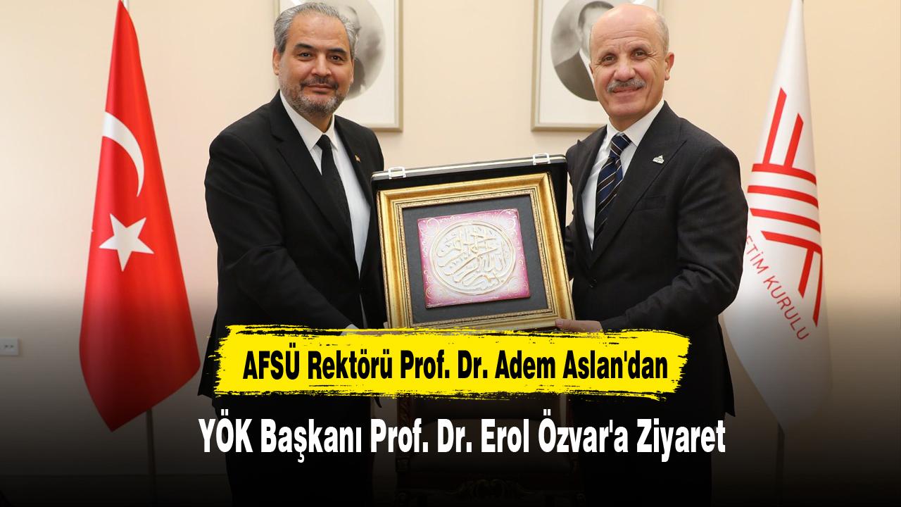 Afyonkarahisar Sağlık Bilimleri Üniversitesi (AFSÜ) Rektörü Prof. Dr. Adem Aslan, Yükseköğretim Kurulu (YÖK) Başkanı Prof. Dr. Erol Özvar'ı makamında ziyaret etti.