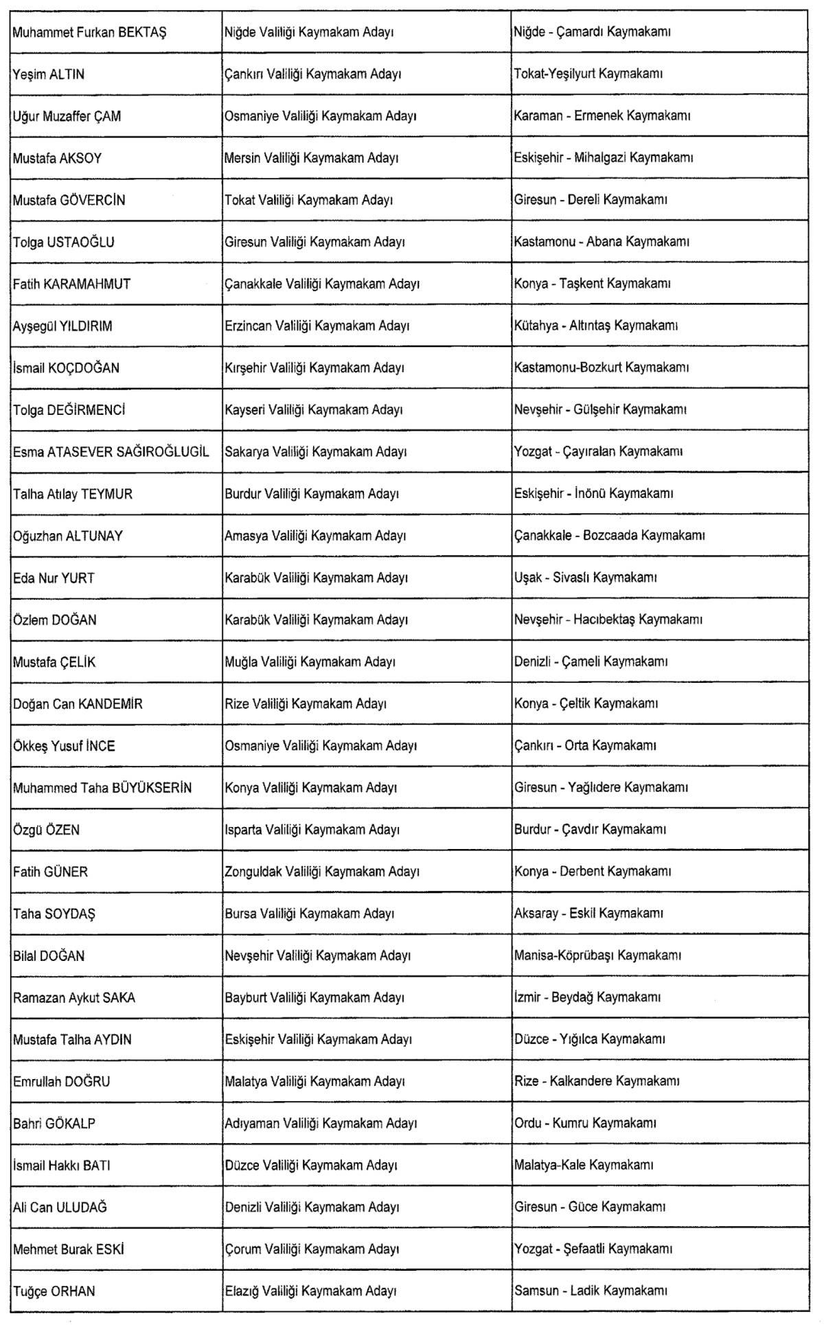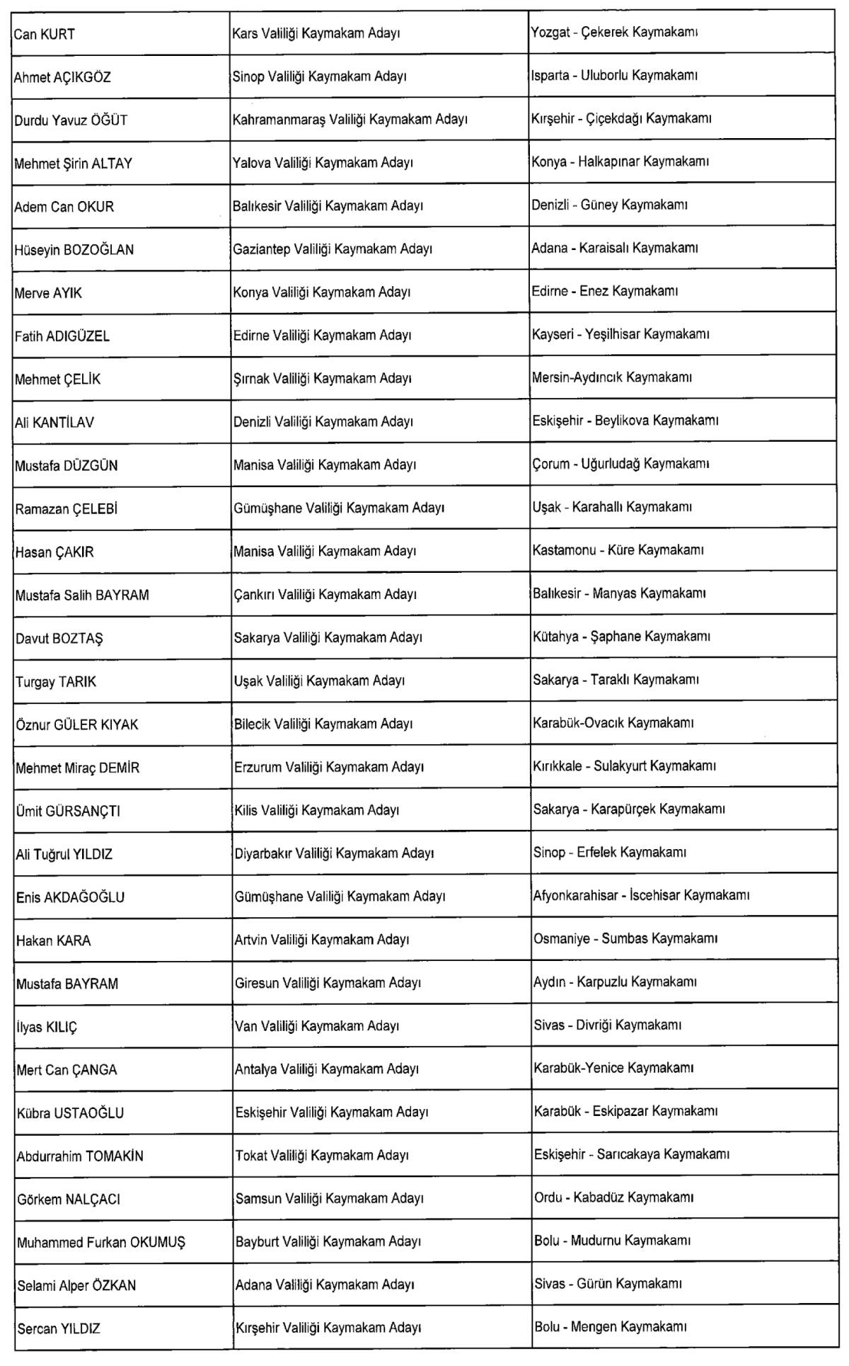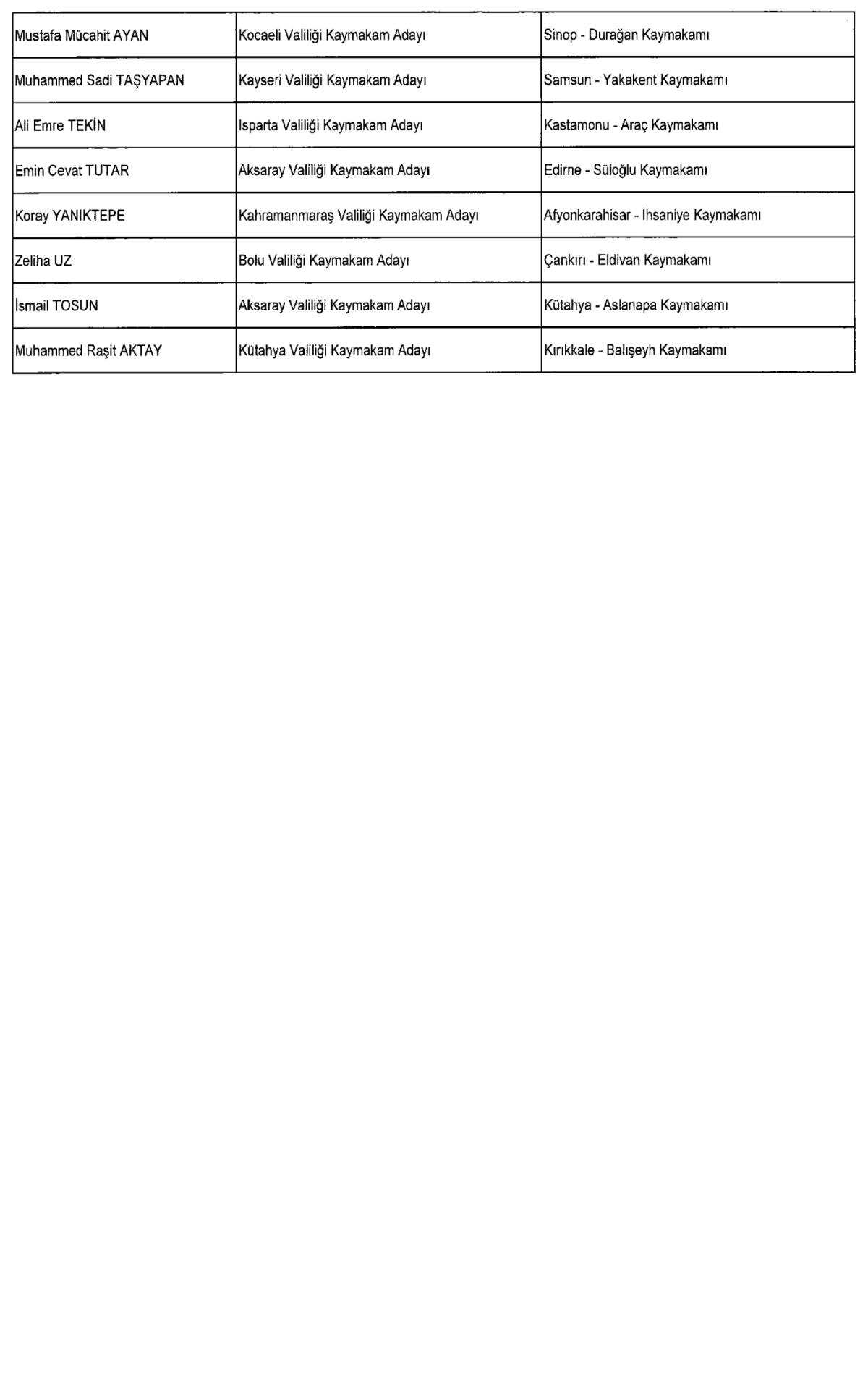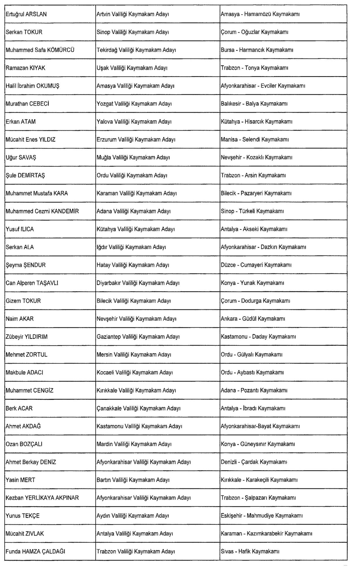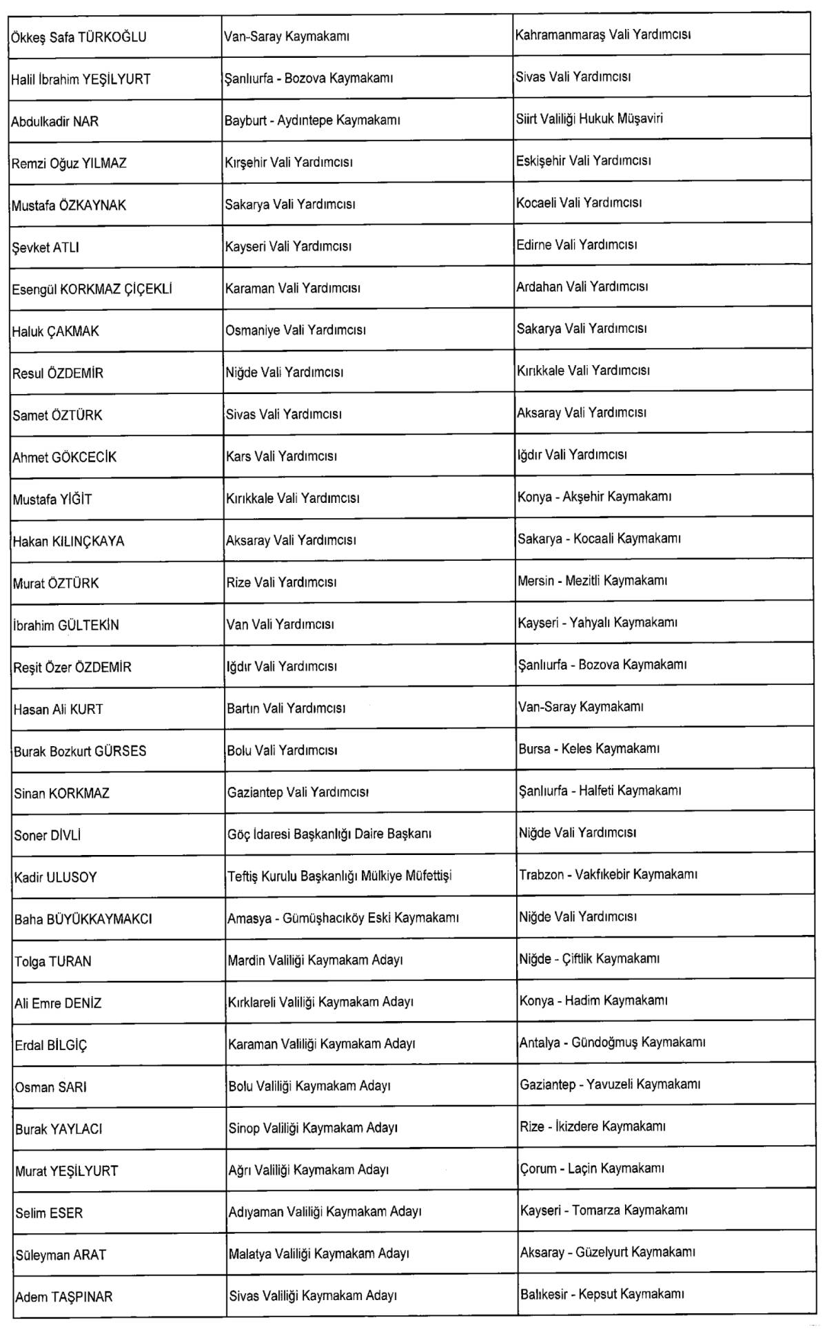 Ayrıca listede çok sayıda vali yardımcısının da farklı illerde görevlendirildiği görüldü.