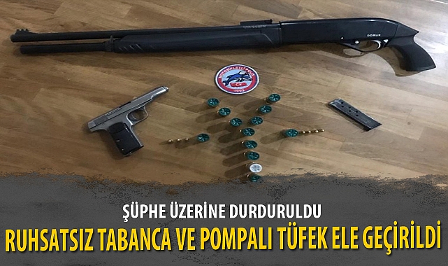 Afyonkarahisar’da motosikletli polis timleri tarafından şüphe üzerine durdurulan otomobilde ruhsatsız tabanca ile pompalı tüfek ele geçirildi.