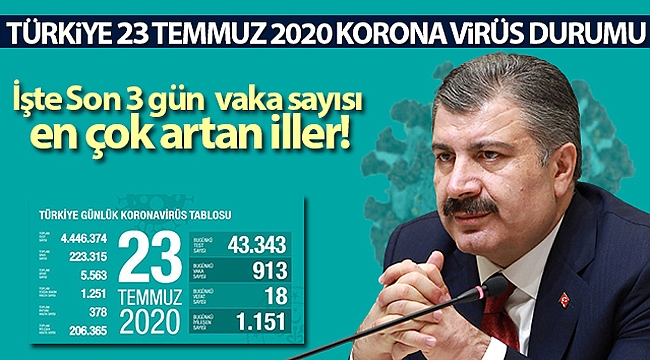 "İyileşen sayımız vaka sayısından 238 fazla. 1 Hazirandan bugüne COVID-19 sebebiyle kaybettiğimiz 1.043 hasta içinde 65 yaşından küçük olanların sayısı 136. Son 3 gün vaka sayısı en çok artan iller: Ankara, Konya, Şanlıurfa, Batman, Adana, Kayseri, Erzurum."