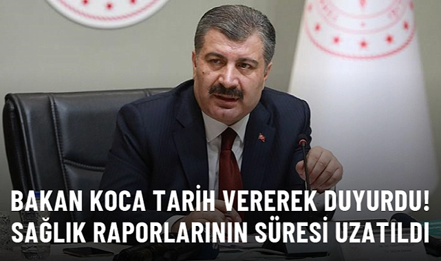 Bakan Koca, "Raporunu henüz yenileme imkanı bulamayan, güçlük yaşaması muhtemel vatandaşlarımız olduğundan mağduriyet yaşanmaması amacı ile süreli sağlık raporlarının geçerlilik süreleri 31 Aralık 2023 tarihine kadar yeniden uzatılmıştır. Raporlar, bu tarihten sonra kademeli olarak yenilenecek" bilgisini paylaştı.