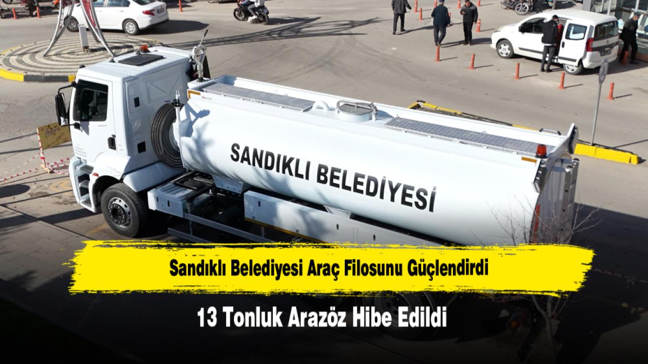 Sandıklı Belediye Başkanı Adnan Öztaş’ın girişimleri sonucunda, Çevre, Şehircilik ve İklim Değişikliği Bakanlığı tarafından 13 ton su kapasiteli, son teknoloji arazöz kamyon Sandıklı Belediyesine hibe edildi. Yeni araç; özellikle yangınlara hızlı müdahale, temizlik hizmetleri ve çeşitli saha çalışmaları için belediyenin operasyonel gücünü artıracak.