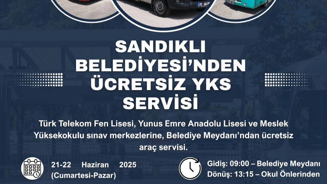 Sandıklı Belediyesi, "Tüm çabamız Sandıklı için" sloganıyla, öğrencilerin sınav stresine bir de ulaşım derdi eklememesi adına böyle bir uygulamayı hayata geçirdi. Bu ücretsiz servis hizmetinden tüm sınav adayları faydalanabilecek.
