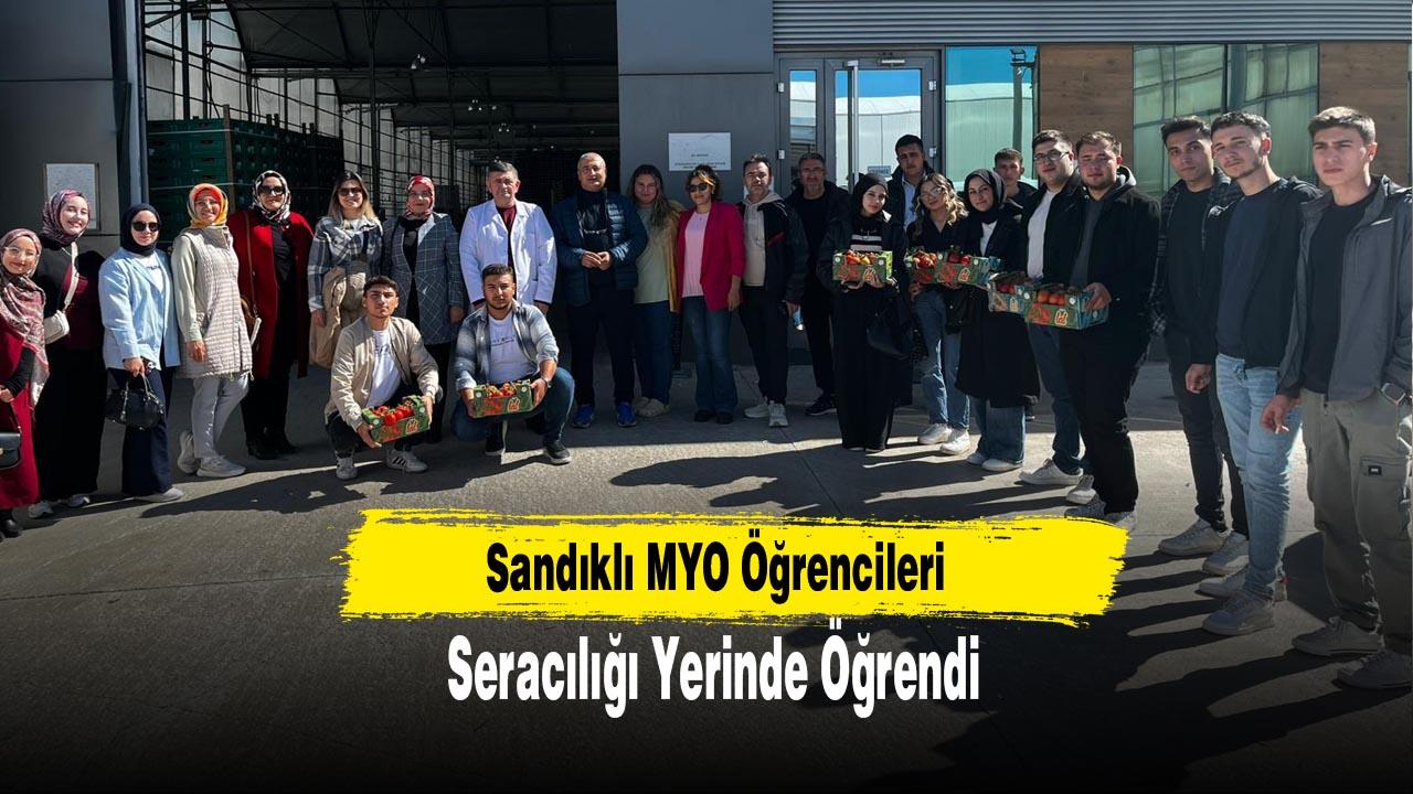 Dr. Öğretim Üyesi Rabia Ersan ve Öğretim Görevlisi Dr. Funda Özüsoy’un koordinatörlüğünde gerçekleştirilen gezide öğrenciler; Koyuncu Seracılık, Yaşarlar Seracılık, Sanjet A.Ş.’nin çiçek serası, kurutma ve balık üretim tesisi ile CFK Seracılık işletmelerini ziyaret etti. Öğrenciler ayrıca Sandıklı’nın turizm potansiyelini tanımak amacıyla Geleneksel Kür Merkezi ve Hüdai Kaplıcaları’nda da incelemelerde bulundu.