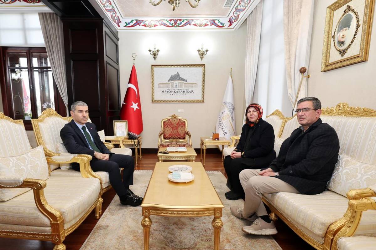Şehit Deniz Piyade Er Ali Çakır’ın babası Ali Çakır, Şehit Jandarma Binbaşı Yılmaz Tankül’ün babası Mehmet Tankül ile Şehit Er Cemil Akçeşme’nin kardeşi Sümeyra Dönmezdemir, Afyonkarahisar Valisi Dr. Naci Aktaş’ı ziyaret etti.
