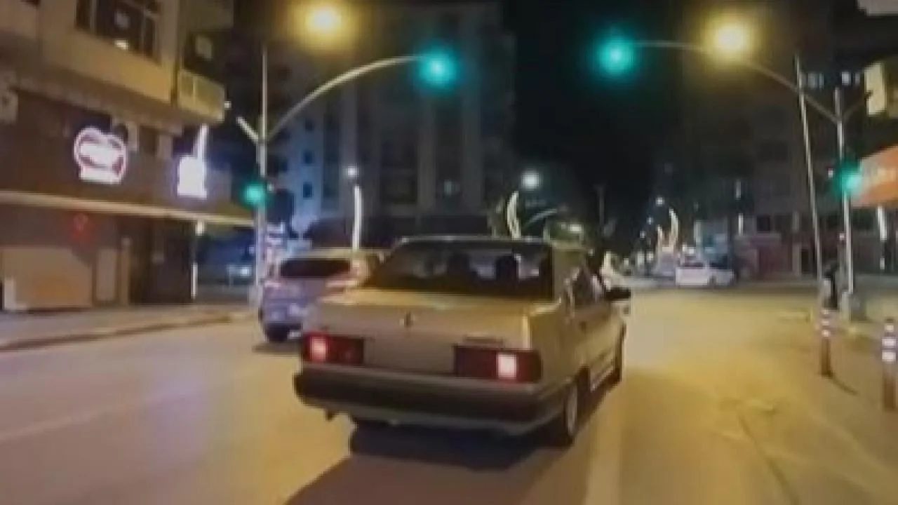 Plakası kapatılmış gri renkli bir aracın sağ ön koltuğunda oturan bir şahsın, araç seyir halindeyken havaya doğru silah tuttuğu ve tetiğe bastığı anlara dair görüntüler tespit edildi.