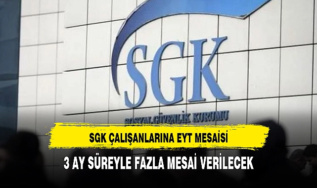 EYT düzenlemesinin yasalaşması sonrası 2,2 milyon kişi emeklilik hakkı kazanmıştı. Bu çerçevede EYT işlemlerinin hızlandırılmasını adına SGK çalışanlara aylık 3 ay boyunca fazla mesai verilecek. Verilecek fazla mesai ile saatlik 27 lira alan SGK çalışanlarının ücreti yüzde 88 artışla 51 liraya çıkarılacak. SGK çalışanları aylık 3 bin lira fazla mesai alırken bu rakam 6 bin liranın üzerine çıkacak. >>İHA