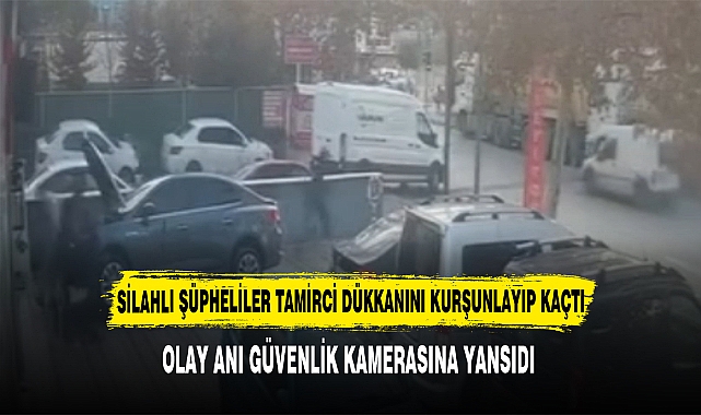 Kimliği belirsiz iki şüpheli, oto tamirhanesine silahla ateş ettikten sonra koşarak kayıplara karıştı. İş yeri çalışanları neye uğradıklarını şaşırırken o anlar güvenlik kamerasına anbean yansıdı.