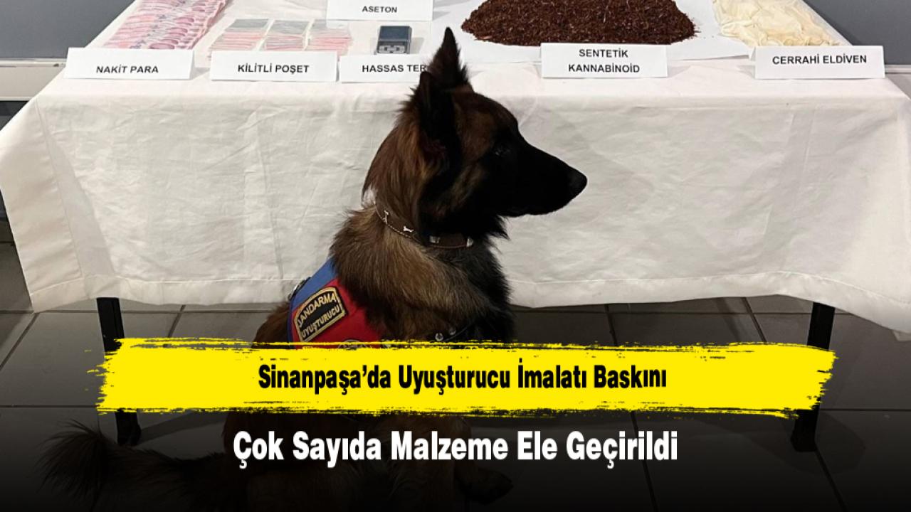 Afyonkarahisar İl Jandarma Komutanlığı ekipleri, Sinanpaşa ilçesinde adli makamlardan alınan arama kararının ardından belirlenen adreste operasyon gerçekleştirdi. Yapılan aramada uyuşturucu madde imalatı ve ticaretinde kullanıldığı değerlendirilen çok sayıda materyal ele geçirildi.