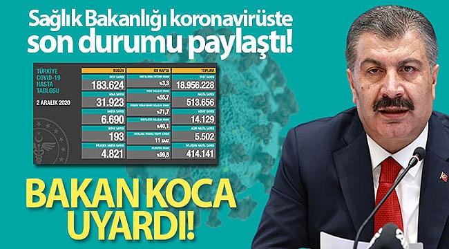 Sağlık Bakanı Fahrettin Koca, sosyal paylaşım sitesi Twitter hesabından yaptığı paylaşımda, “Bugün tespit edilen 6 bin 690 yeni hastamız var. Mevsim şartları nedeniyle kapalı ortamların kullanımı arttı. Artan aktif hasta sayısını azaltmak için kalabalık, kapalı ve yeterince havalandırılmayan ortamlardan uzak durmalıyız” ifadelerine yer verdi.