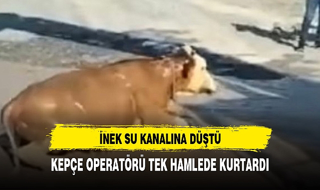 Iğdır merkez Çalpalı köyünde yaşayan İdris K'nın su kanalına düşüp sürüklenen ineğini kepçe öperatörü tek hamle ile kurtardı.