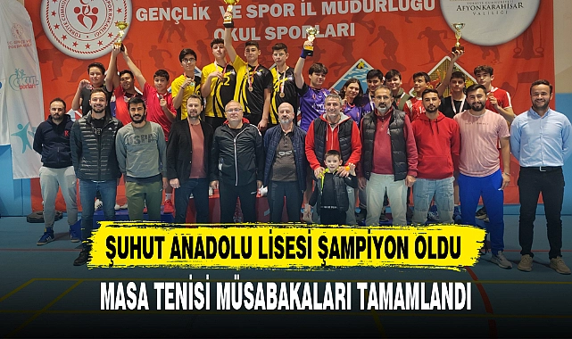 Gençlik ve Spor İl Müdürlüğü ile İl Milli Eğitim Müdürlüğü'nün ortaklaşa düzenlediği Okul Sporları devam ediyor. Okul Sporları Genç Erkekler Masa Tenisi Müsabakaları da tamamlandı. Erkekler de rakiplerini geride bırakan Şuhut Anadolu Lisesi şampiyonluğunu ilan etti. Müsabakaların ardından düzenlenen törenle sporculara kupa ve madalyaları teslim edildi. Ödül töreninde Gençlik ve Spor İl Müdürlüğü Spor Hizmetleri Müdürü Yılmaz Erşen ve antrenörler ödülleri teslim etti.
