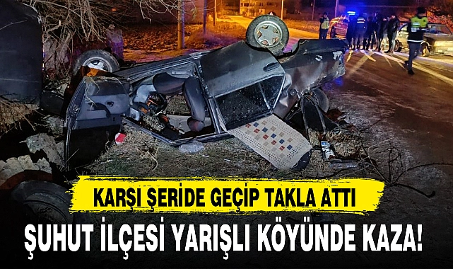 Kaza, Şuhut ilçesi yarışlı köyü yakınlarında meydana geldi. Edinilen bilgilere göre, İ.A., idaresindeki 03 SH 270 plakalı Tofaş otomobil sürücüsünün henüz belirlenemeyen bir sebepten ötürü direksiyon hakimiyetini kaybetmesi sonucu kontrolden çıktı. Savrulan araç ardından karşı şeride geçip takla attıktan sonra ters dönerek durabildi. Kazada sürücü ile birlikte K.Y., K.T. ve H.K., yaralandı. Yaralılar ardından çevredekilerin haber vermesi üzerine olay yerine gelen ambulanslar ile Afyonkarahisar Devlet Hastanesine kaldırıldı. Kazanın ardından jandarma tarafından inceleme başlatıldı.