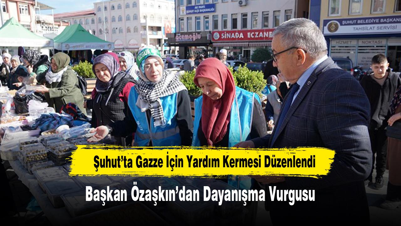 Şuhut ilçesinde Gazze’de yaşanan insanlık dramına destek olmak amacıyla düzenlenen kermesi ziyaret eden Şuhut Belediye Başkanı Muhittin Özaşkın, “Gazze’deki kardeşlerimizin acısını yüreğimizde hissediyoruz” dedi.
