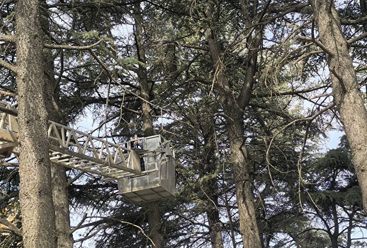 Ağaçtan indirilen ve hayli korktuğu gözlenen kedi tedavi için bakımevine yollandı.