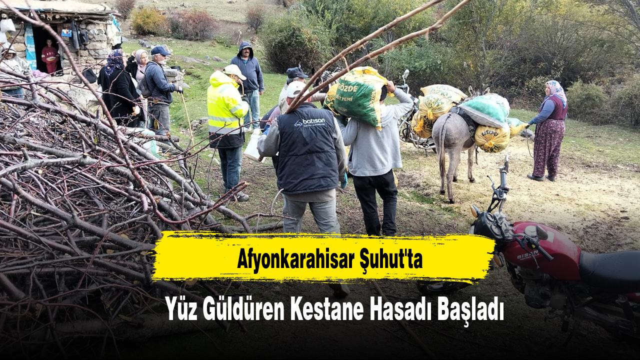 Afyonkarahisar'ın Şuhut ilçesine bağlı Tekkek Köyü'nde sonbaharın gelmesiyle birlikte kestane hasadı başladı.