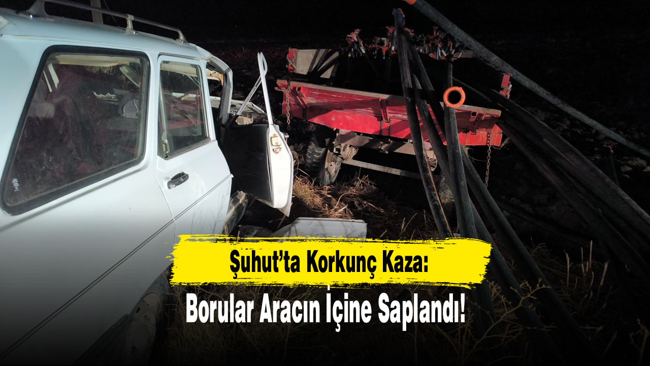 Afyonkarahisar’ın Şuhut ilçesine bağlı Yarışlı köyü yakınlarında meydana gelen trafik kazası yürekleri ağza getirdi. Park halindeki traktörün römorkuna çarpan otomobildeki iki kişi yaralanırken, römorkta yüklü bulunan plastik su borularının aracın ön camından içeri girmesi kazanın şiddetini gözler önüne serdi.