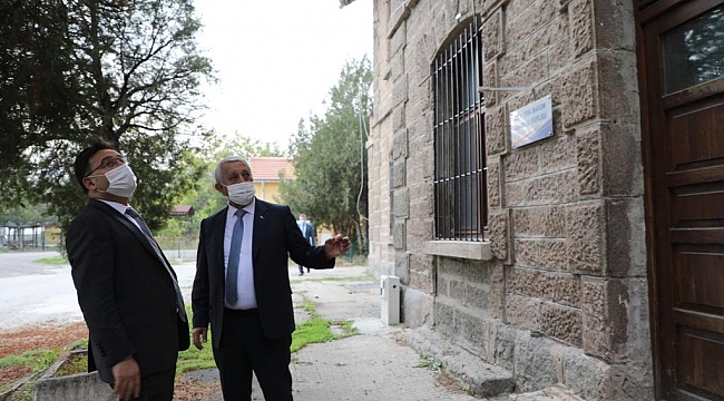 Vali Gökmen Çiçek ve Belediye Başkanı Mehmet Zeybek, Afyonkarahisar'ın ilk tren istasyonu olarak 1890 yılında inşa edilen, Gastronomi Merkezi olarak hizmet verecek tarihi İzmir İstasyonu’nda incelemelerde bulundu. Başkan Zeybek, Tarihi binanın çürümesine gönlümüz razı olmadı” dedi.