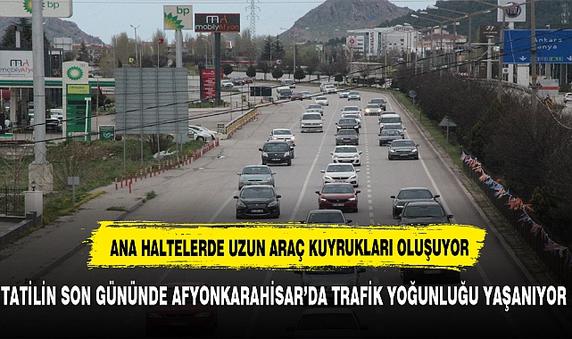 Tatilin son gününde, tatilden dönmek isteyenlerin yoğun talebiyle birlikte Afyonkarahisar'da trafik sıkışıklığı yaşanıyor. İç Anadolu ile Ege bölgelerini birbirine bağlayan stratejik konumuyla dikkat çeken Afyonkarahisar, dönüş trafiğinin merkezi haline geldi.