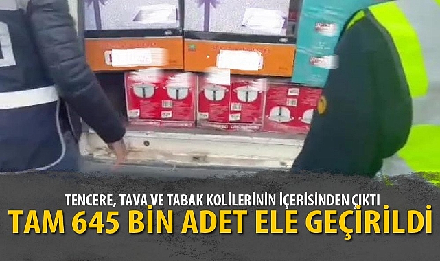 Afyonkarahisar’da polis tarafından şüphe üzerine durdurulan minibüste tencere, tava ve tabak kolilerinin içerisinde 645 bin adet doldurulmuş makaron ele geçirildi.