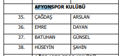 AFYONSPOR’DAN DÖRT FUTBOLCU DA LİSTEDE