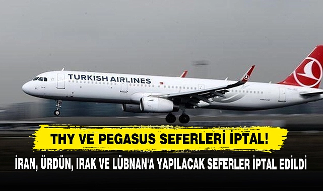 Türk Hava Yolları (THY) ve Pegasus Havayollarının, İran ve İsrail arasındaki gerilim ve komşu ülkelerin hava sahasını kapatması nedeniyle bu gece ve yarın İran, Ürdün, Irak ve Lübnan'a yapacağı seferler iptal edildi.