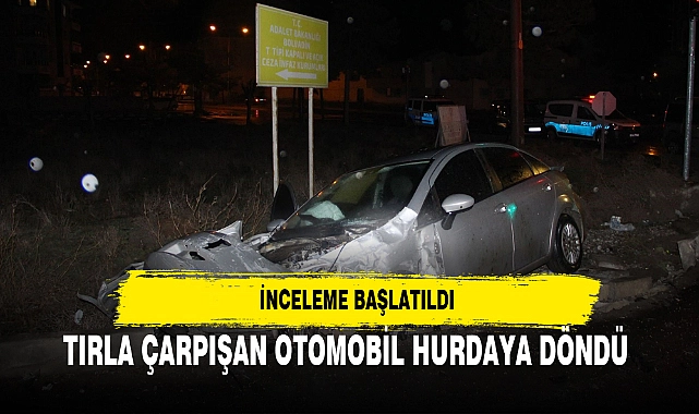 TIRLA ÇARPIŞAN OTOMOBİL HURDAYA DÖNDÜ
