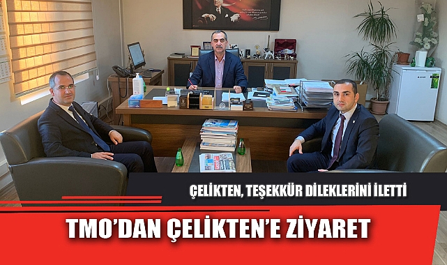 Selçuk ve Kocabey, Çelikten’i kutladı ve “hayırlı olsun” dileklerini iletti. Üretime dayalı sektörler hakkında istişare yapılan ziyaret dolayısıyla ATSO Meclis Başkanı Mustafa Ali Çelikten, Toprak Mahsulleri Ofisi Afyonkarahisar Başmüdürü Muhammet Selçuk ve Alım Muhafaza ve Ticaret Şefi Kıvanç Kocabey’e teşekkür etti. >>YASİN AY