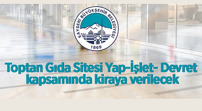 Mülkiyeti Kayseri Büyükşehir Belediyesine ait olan, Tanpınar mahallesi 10618 ada 1 parselde yapılacak olan Toptan Gıda Sitesi, Yap-İşlet- Devret kapsamında 2886 sayılı Devlet İhale Kanunun 45. Maddesi gereğince “ Açık Teklif Usulü İhale” ile 10 yıllığına kiraya verilecek.