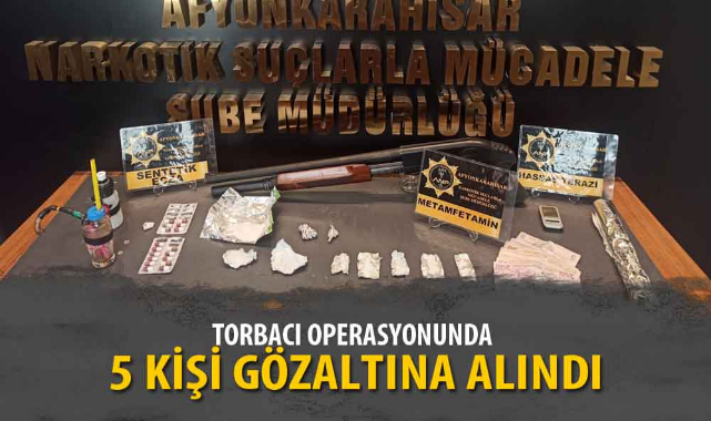 Afyonkarahisar’da ‘torbacı’ diye adlandırılan sokak satıcılarına yönelik yapılan operasyonda 5 kişi gözaltına alınırken, operasyonda değişik türlerde uyuşturucu maddeler ile ruhsatsız tüfek ele geçirildi.