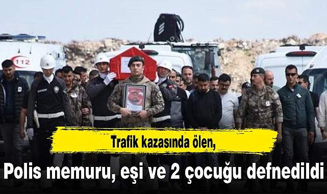 Trafik kazasında ölen polis memuru, eşi ve 2 çocuğu defnedildi