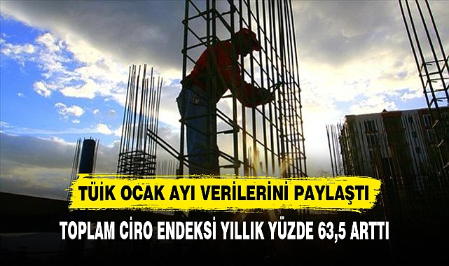 Buna göre sanayi, inşaat, ticaret ve hizmet sektörleri toplamında ciro endeksi 2024 yılı Ocak ayında yıllık yüzde 63,5 arttı.