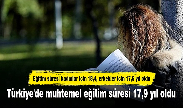 Türkiye genelinde muhtemel eğitim süresi 2023 yılında 2022'ye göre erkeklerde yüzde 2,8 düşüşle 17,6 yıl, kadınlarda ise yüzde 0,3 artışla 18,4 yıl oldu.