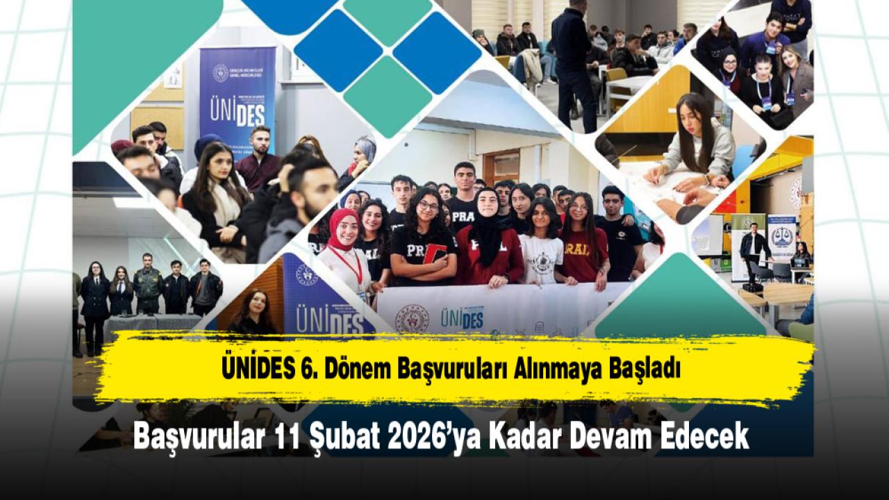 Programın 6. dönem başvuruları başladı. ÜNİDES’e başvuru yapmak isteyen öğrenci kulüpleri, 11 Şubat 2026 tarihine kadar projelerini iletebiliyor. Başvuru ve detaylı bilgi için genclikhizmetleri.gov.tr adresi ziyaret edilebiliyor. Ayrıca gençler, Gençlik Merkezleri ve Genç Ofisler aracılığıyla program hakkında bilgilendiriliyor.