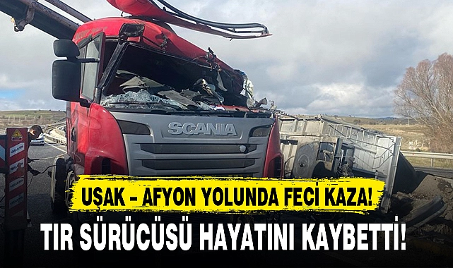 Uşak-Afyonkarahisar karayolu üzerinde devrilen tırın sürücüsü hayatını kaybetti.