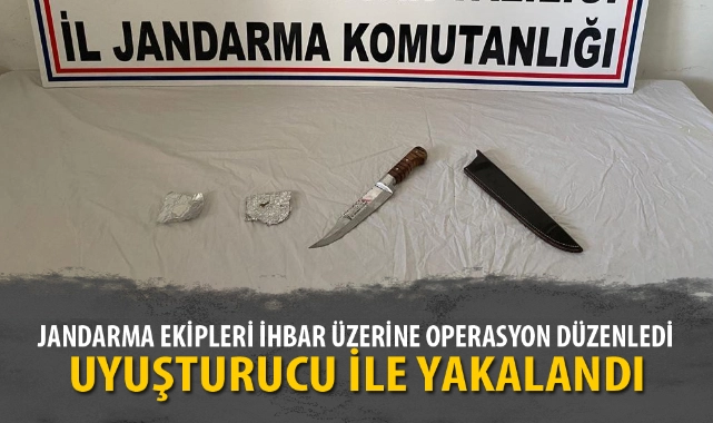 Edinilen bilgilere göre, B.U., isimli şahsın uyuşturucu madde bulundurduğu ihbarını alan jandarma ekipleri harekete geçti. Şahsı yakalayarak gözaltına alan ekipler şüphelinin üzerinde yaptığı aramada ise 6 gram metanfetamin, 10 gram kenevir tohumu ve 30 santimetre uzunluğundan ekmek bıçağı ele geçirdi. Olayın ardından gözaltına alınan şahsın işlemlerinin devam ettiği bildirildi.