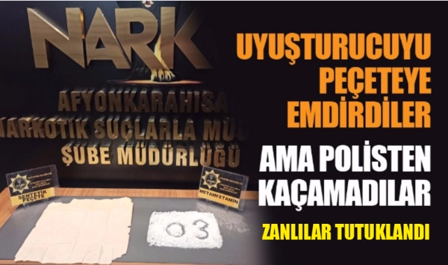 Afyonkarahisar’da metanfetamin ve peçeteye emdirdikleri bonzai isimli uyuşturucu ile yakalanan 2 şahıs tutuklandı.