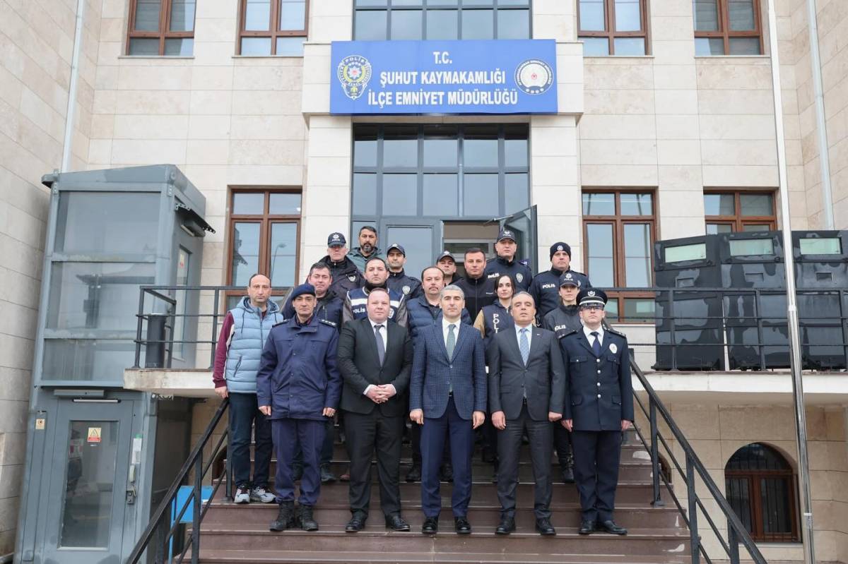 Vali Aktaş, Şuhut İlçe Emniyet Müdürlüğü ile Şuhut İlçe Jandarma Komutanlığı’nı ziyaret ederek güvenlik birimlerinin yürüttüğü çalışmalar hakkında bilgi aldı.