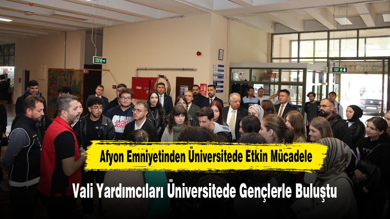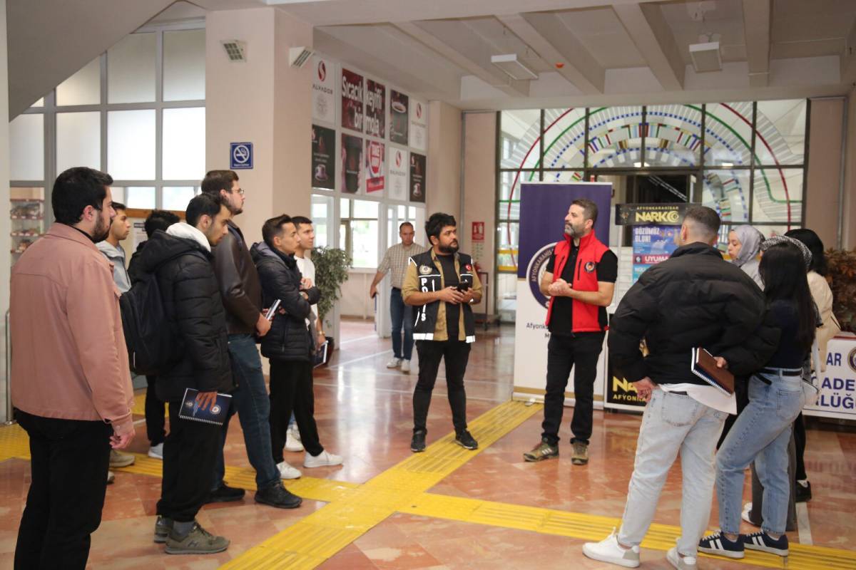 Afyonkarahisar Vali Yardımcıları Celil Ateşoğlu ve İhsan Ayrancı ile İl Emniyet Müdürü Ahmet Birtan Erol, Afyon Kocatepe Üniversitesi İktisadi ve İdari Bilimler Fakültesi’nde kurulan Terörle Mücadele ve Narkotik Suçlarla Mücadele Şube Müdürlüğü stantlarını ziyaret etti. Ziyarette öğrencilerle bir araya gelen protokol üyeleri, gençlerin düşünce ve önerilerini dinledi.