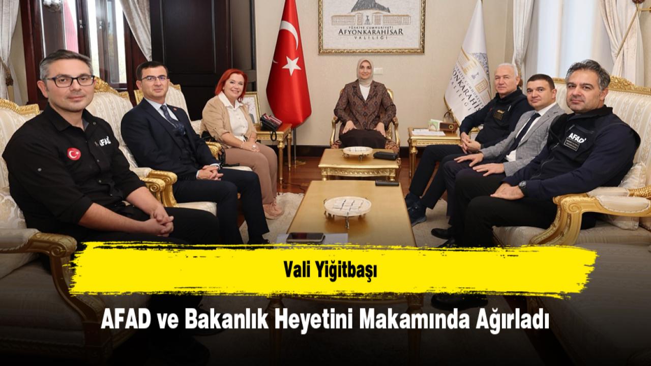 Afyonkarahisar Valisi Doç. Dr. Kübra Güran Yiğitbaşı, Afetlere Müdahale Genel Müdürü Dr. Sadi Ergin, Çevre Şehircilik ve İklim Değişikliği Bakanlığı Mekânsal Planlama Genel Müdür Yardımcısı Dr. Selçuk Aydemir, AFAD Daire Başkanı Mehmet Ali Öncü ve beraberindeki heyeti makamında kabul etti.