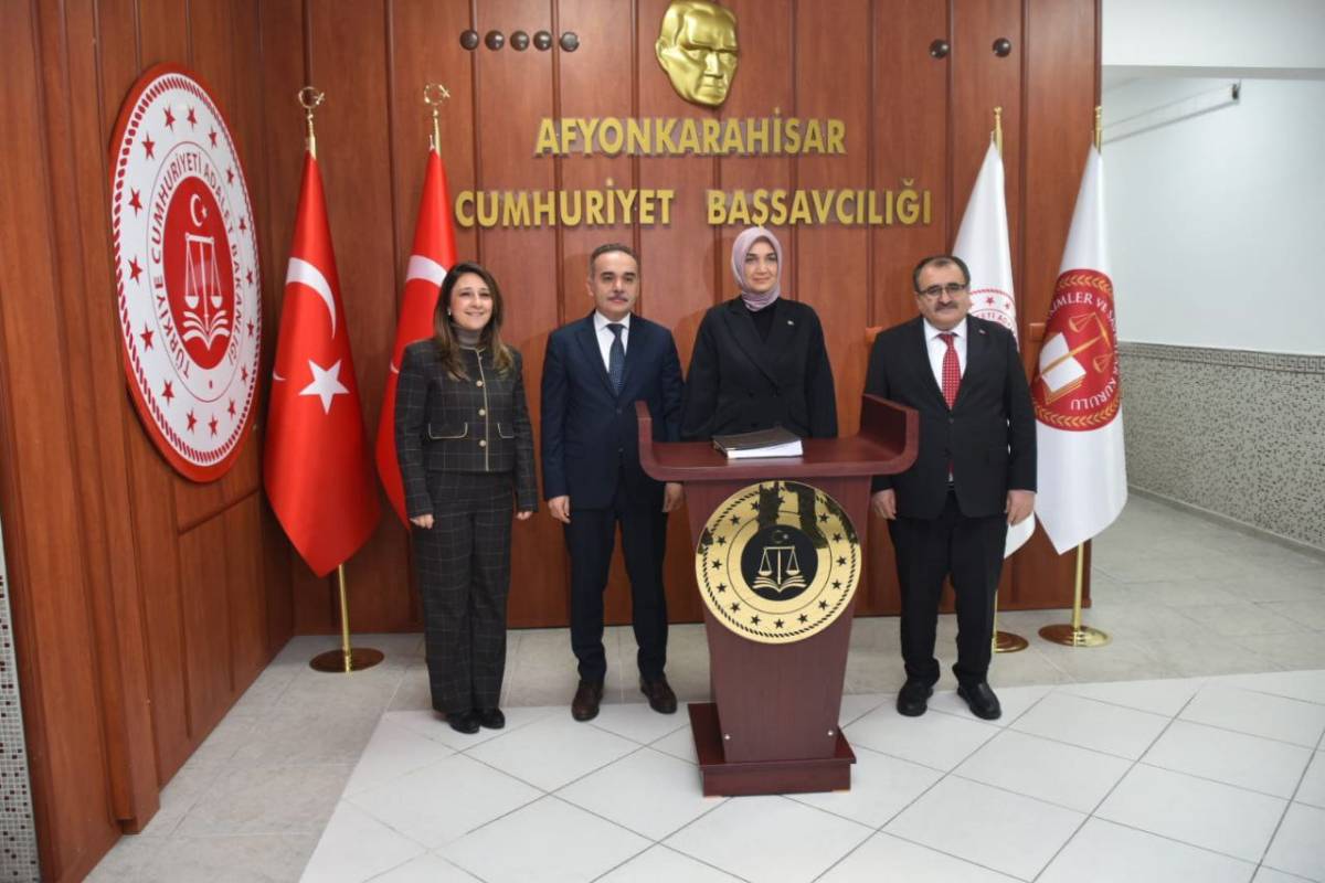 İçişleri Bakan Yardımcısı olarak atanan Afyonkarahisar Valisi Sayın Doç. Dr. Kübra Güran Yiğitbaşı, Cumhuriyet Başsavcısı Mehmet Patlak’a ve Baro Başkanı Av. İpek Yılmaz Göktürk’e veda ziyareti gerçekleştirdi.
