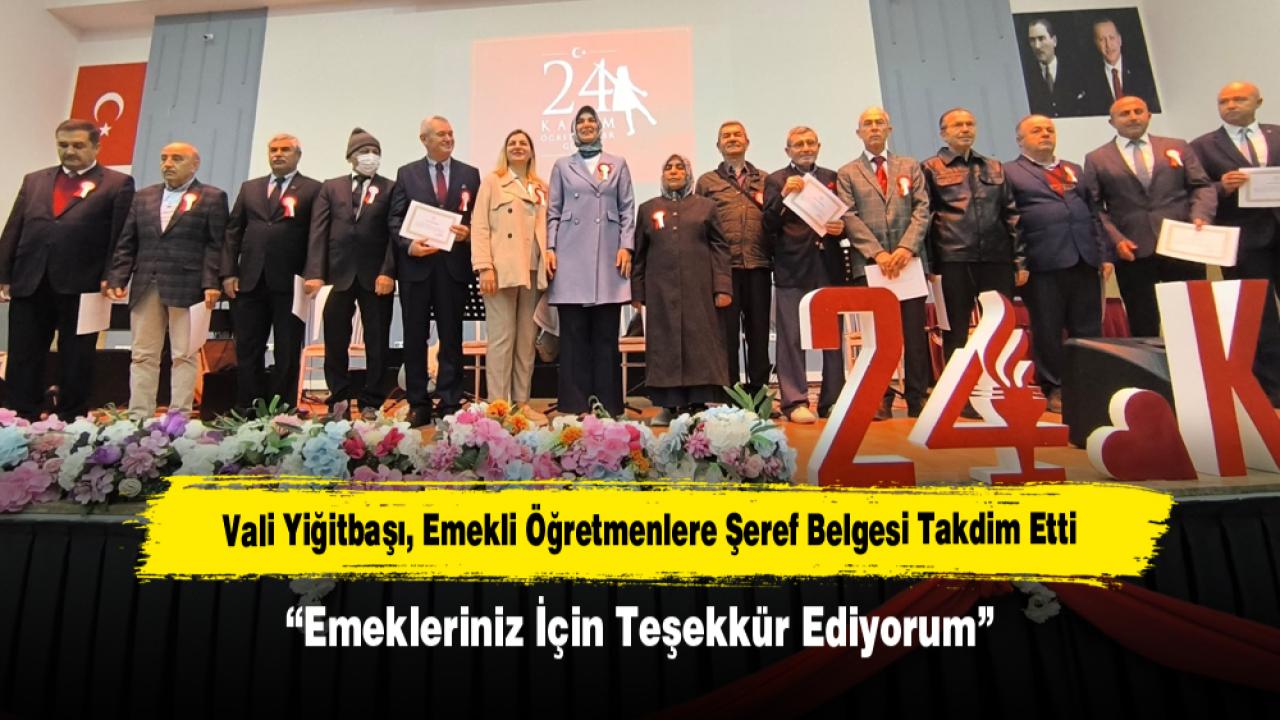 Belge takdiminde konuşan Vali Yiğitbaşı, emekli öğretmenlerin eğitim hayatına sundukları katkılar için teşekkür ederek, Öğretmenler Günü’nü kutladı. Programda öğretmenlik mesleğinin önemine vurgu yapılırken, emekli öğretmenlere duyulan saygı ve minnet ifade edildi.